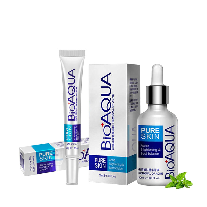 BIOAQUA 2 Pcs Anti Acne Removal Face Care Acne Treatment Set Acne Serum and Acne Scar Removal Cream