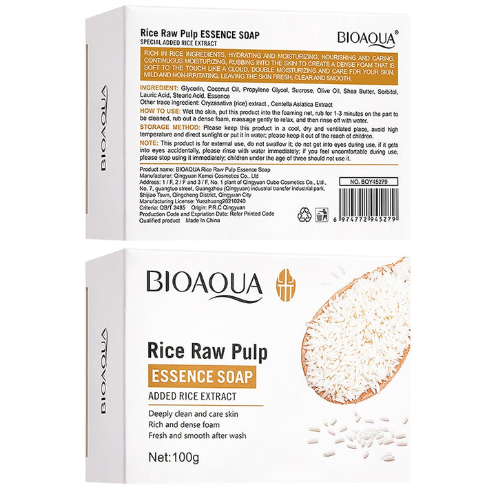 - BIOAQUA Rice Raw Pulp Essence Soap Moisturizing Hydrating Skin Rejuvenation Bath Oil Control Soap 100g
