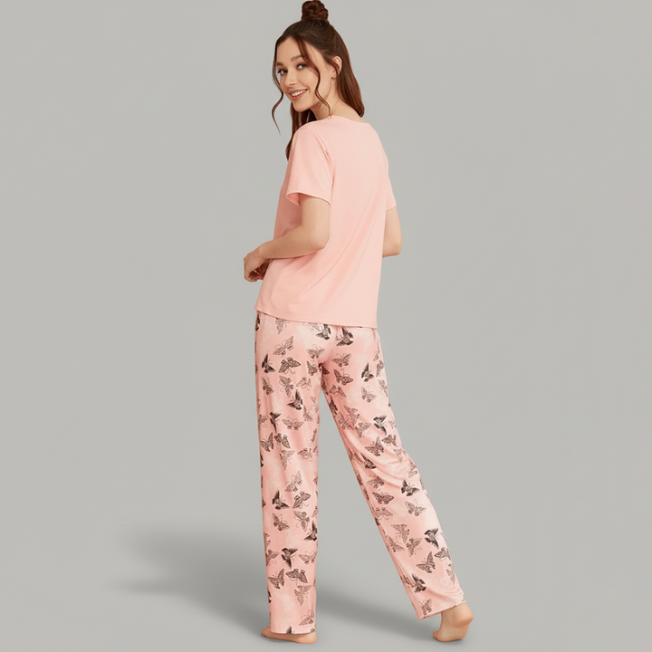 Emerce - M- Baby Pink With Butterfly Printed Pajama Night Suit