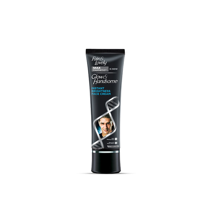 "Men's Fair and Lovely is now Glow & Handsome. This Rapid Action Instant Brightness Cream is the perfect addition to a man’s skincare routine. In your busy day, you're exposed to harsh elements all the time, especially the Sun and Pollution. This exposure can cause skin dullness and dark spots on your skin. Understanding these challenges that Men must face, the international experts at Glow & Handsome have designed this face cream for MEN's skin - Glow & Handsome Rapid Action Instant Brightness cream. Its clinically proven formula uses Rapid Action Technology with multivitamin to give you various benefits: Instant Brightness for glowing and even tone skin, Skin Clarity by reducing dark spots & marks, Oil & Sweat reduction, and skin freshness. This product is safe for daily use as it contains no bleach and bleaching agents. So, if you want a bright look that’s protected in the Sun, get your pack today. And remember to look for the Glow & Handsome logo on the pack when you buy. For best results use twice daily, after washing your face with Glow & Handsome Instant Brightness Face Wash.
