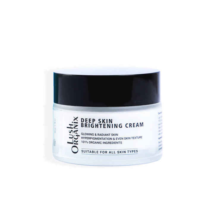 Lush Organix “Deep Skin Brightening Cream” is handmade with 101% organic ingredients with no side effects. It hydrates dull skin & reveal a brighter complexion with visibly improved clarity. See a lit-from-within glow, energize tired skin, & visibly smooth lines & wrinkles. In 1 week, skin looks plumper & smoother. After 4 weeks, skin is visibly tighter & elasticity appears restored