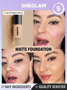SHEGLAM - Complexion Pro Long Lasting Breathable Matte Foundation-Butterscotch Matte Sweat-proof Foundation Oil Control Full Coverage Pore-less Concealer Waterproof Flawless