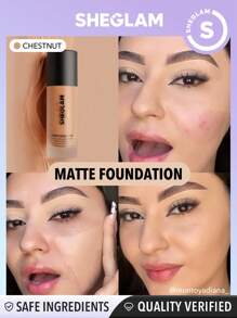 SHEGLAM - Complexion Pro Long Lasting Breathable Matte Foundation-Chestnut Matte Sweat-proof Foundation Oil Control Full Coverage Pore-less Concealer Waterproof Flawless