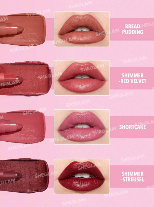SHEGLAM Just Kissed Lipstick Crayon-Shortcake Creamy-Matte Smooth Lipstick High Pigment Bread Pudding