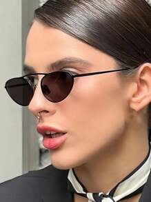 Shein - 1 Pair Women's Fashion Cat-Eye Metal Frame Eyeglasses For Daily Wear
