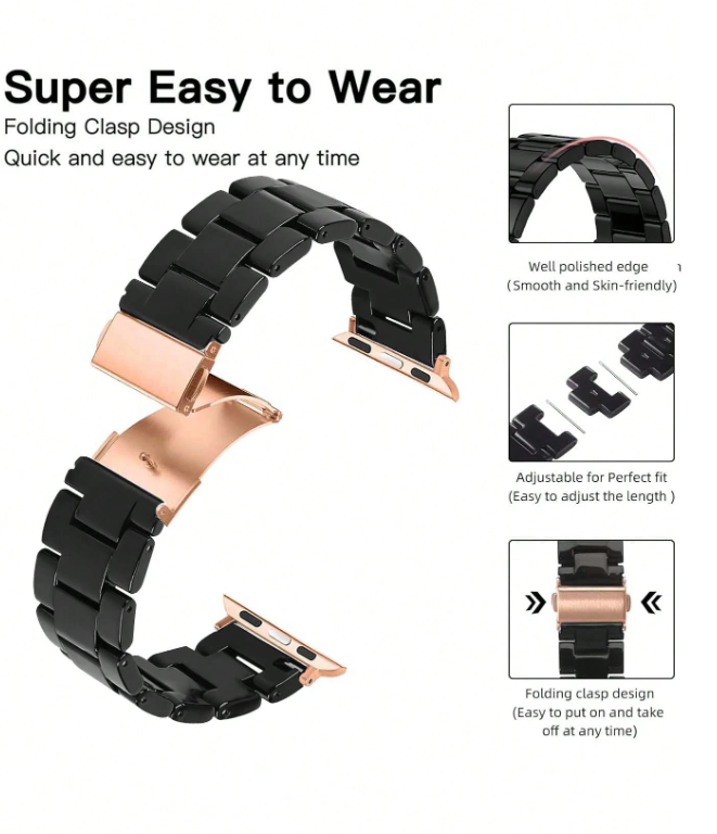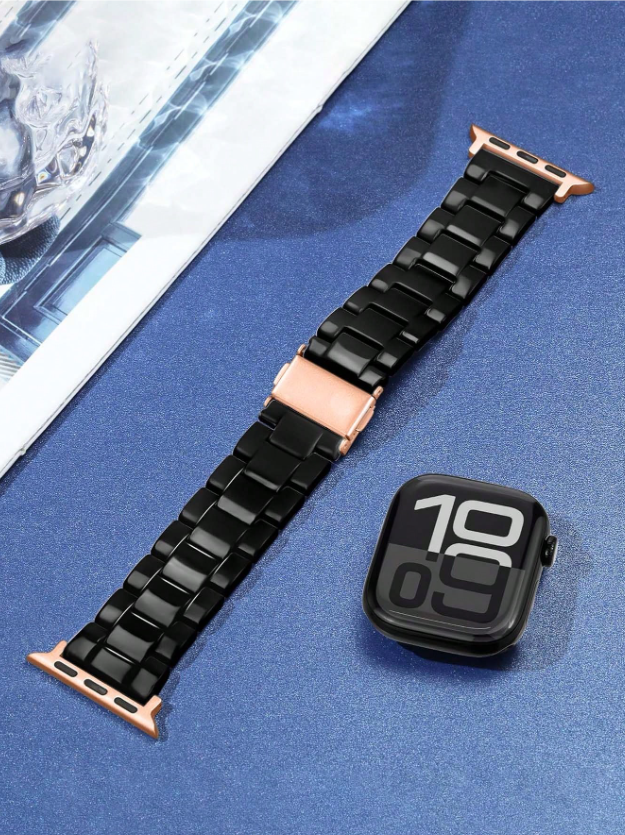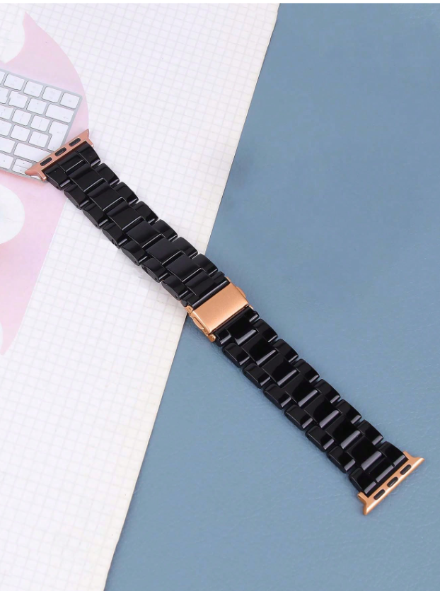 Shein - 1 Pc Apple Watch Band, Fashionable Amber Resin Rose Gold Color, Adjustable, Lightweight Strap Compatible With Apple Watch
