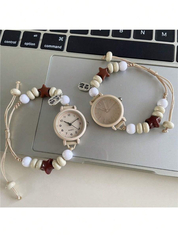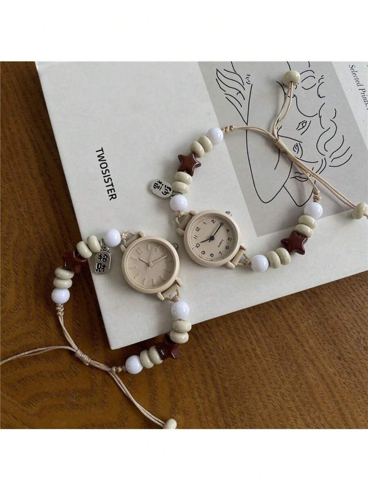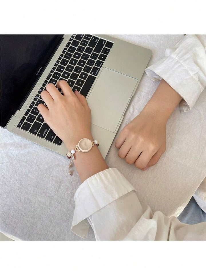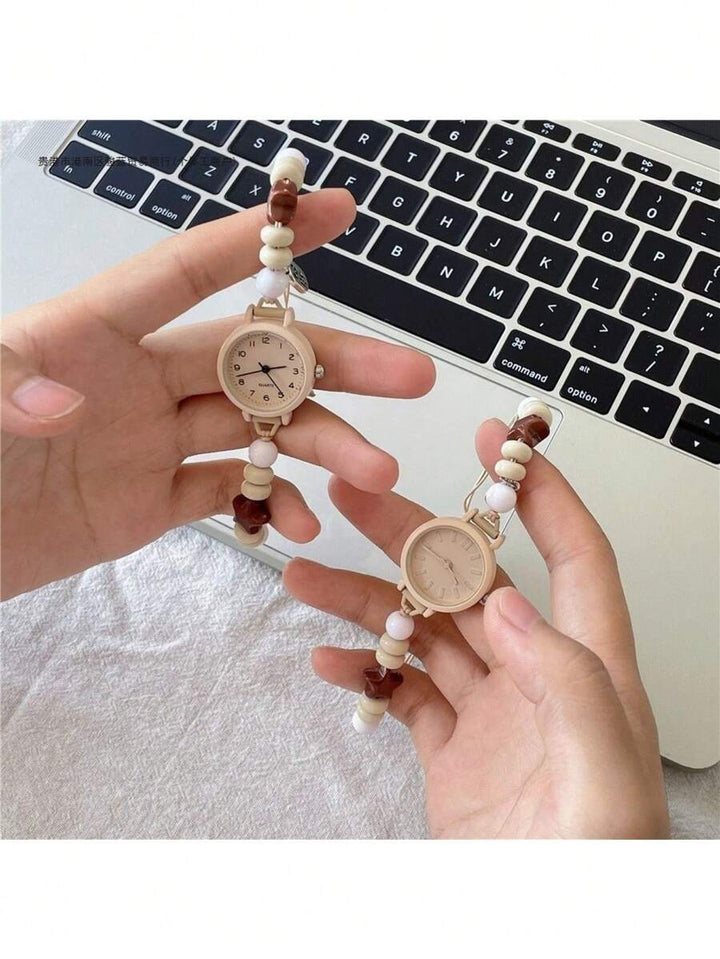 Shein - 1 Piece Women's Beaded Strap Small Dial Simple Ins Niche