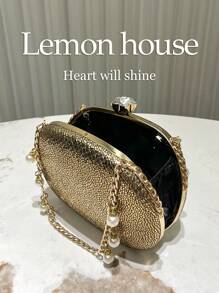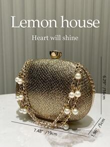 Shein - 1pc Glittery Golden Round Shape Beaded Chain Handle Handbag