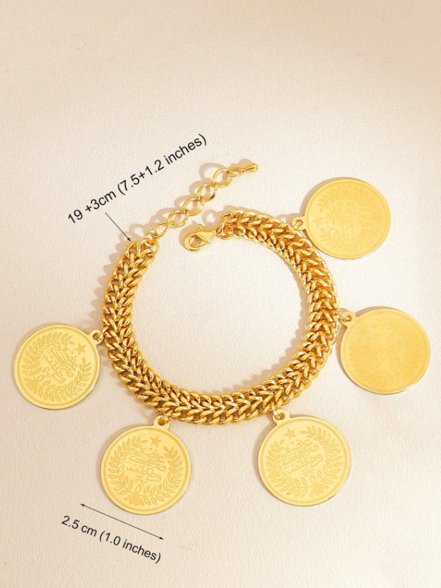 Shein - 1pc Gold Coin Bracelet Double Chain Bracelet Suitable For Men And Women