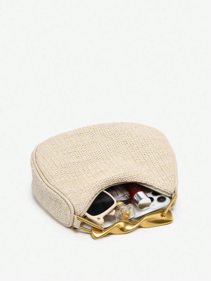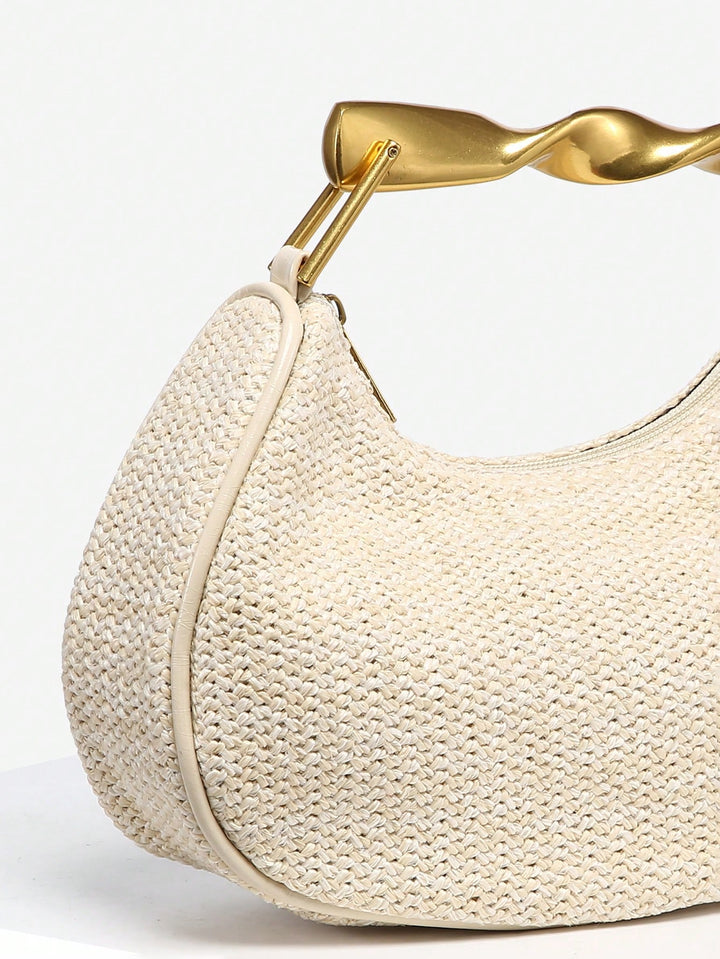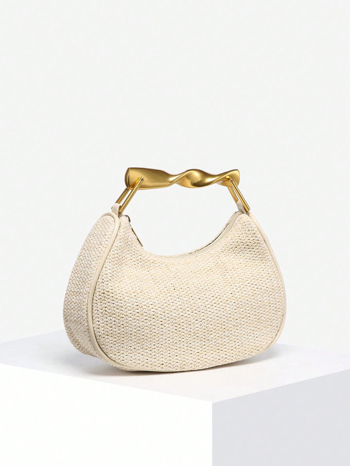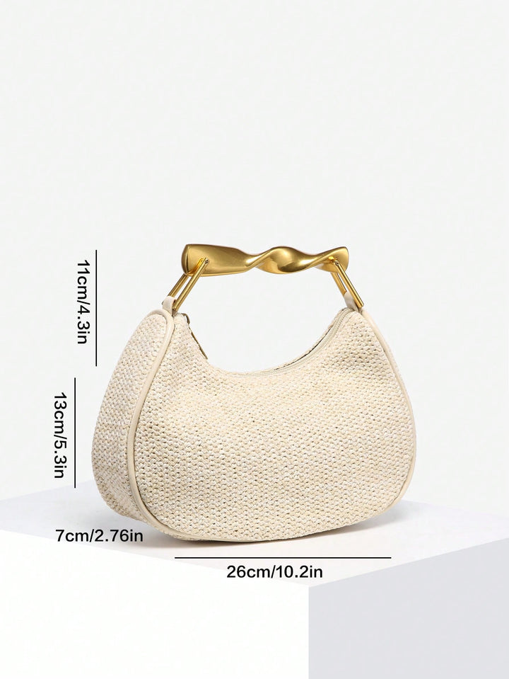 Shein - 1pc Ladies Vintage Casual Soft Faux Pebbled Leather Tote Bag With Metal Handle
