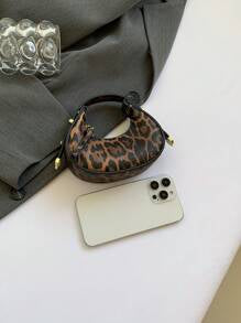 Shein - 1pc PU Leopard Print Mini Crescent Handbag