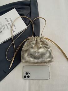 Shein - 1pc Quilted Drawstring Closure PVC Sequin Bucket Bag