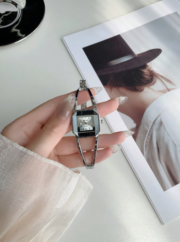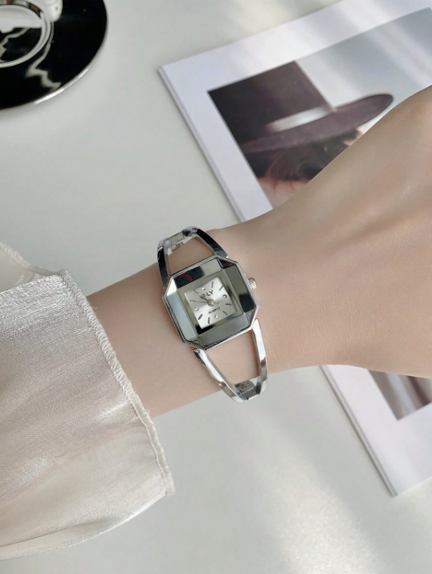 Shein - 1pc Rose Gold Crystal Glass Square Dial Women Bracelet Watch