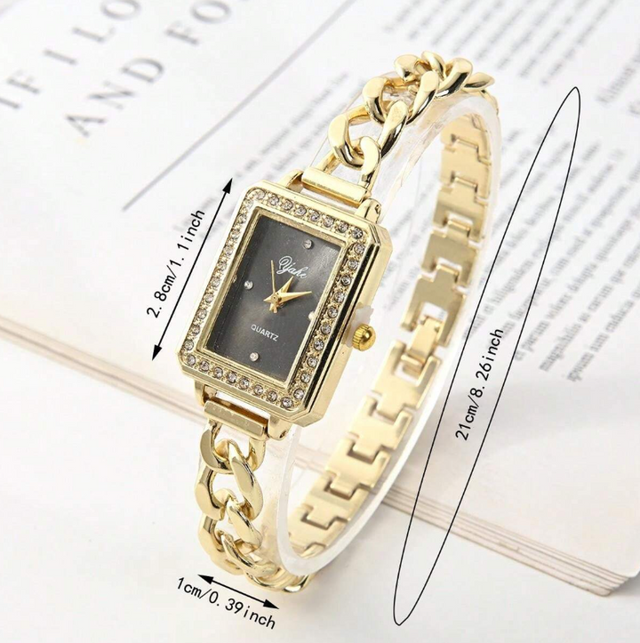Shein - 1pc Square Crystal Dial Webbing Strap Bracelet Watch