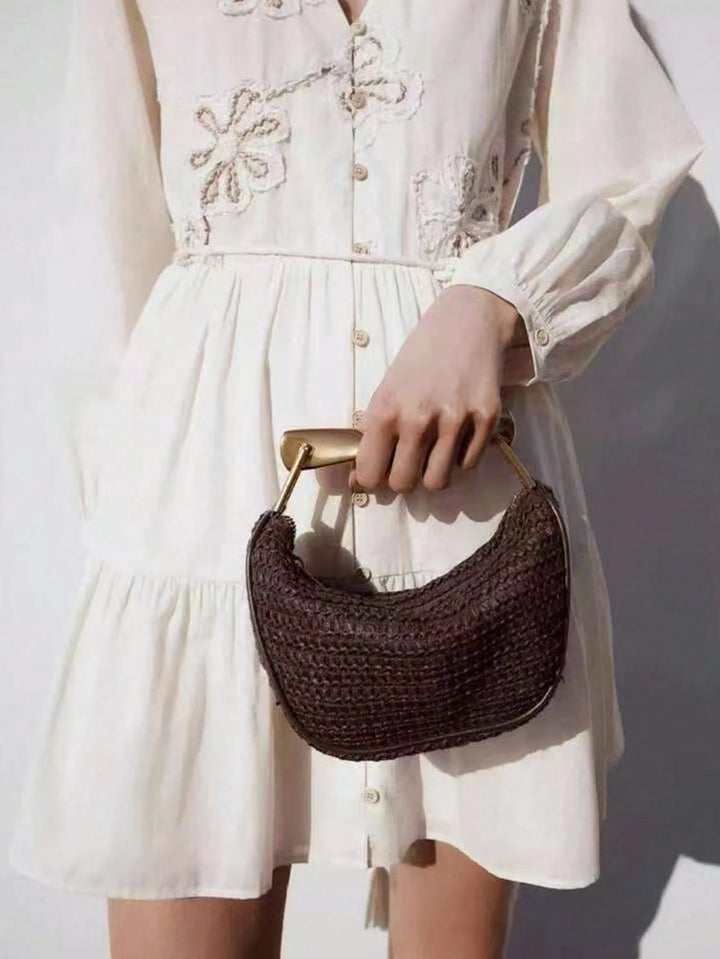Shein - 1pc Women Fashion High-End Feeling Straw & Metal Handbag