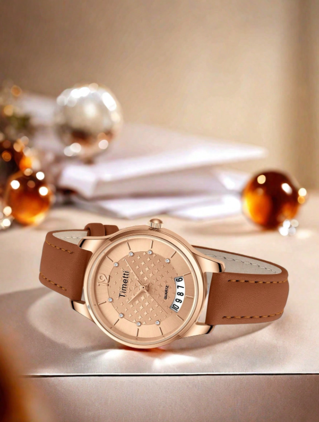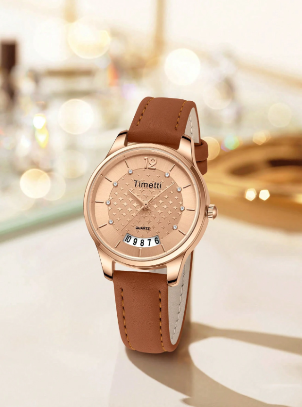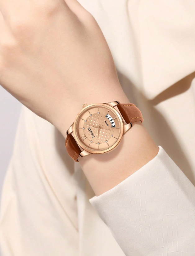 Shein - 1pc Women Vintage Elegant Calendar Quartz Wrist Watch