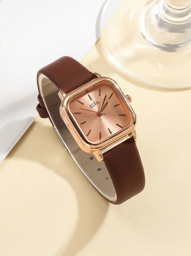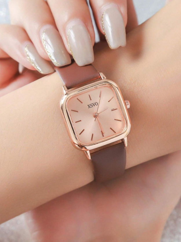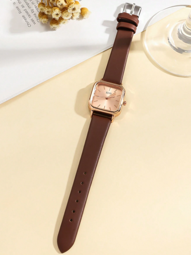 Shein - 1pc Women's Elegant Fashion Bar Scale Dial Leather Strap Quartz Watch