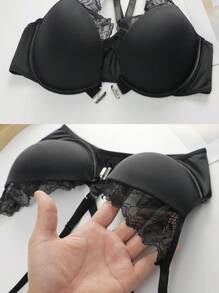 Shein - 1Pc Women'S Fashionable & Sexy Lace Edge Front Buckle Breathable & Adjustable Push-Up Bra