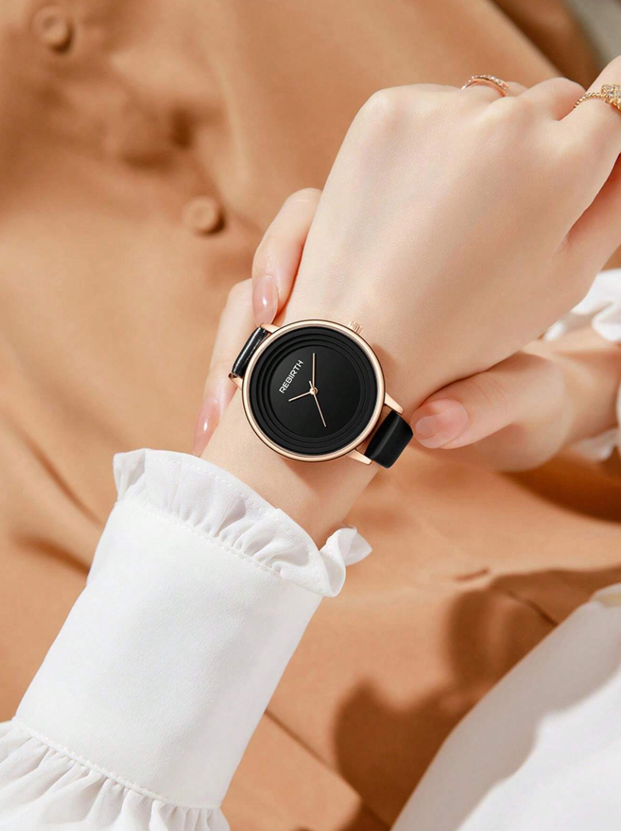 Shein - 1pc Women's Vintage Round Dial Quartz Wrist Watch,