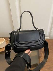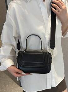 Shein - Elegant Solid Color Fashion Handbag, Retro Flap Purse For Women