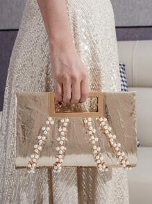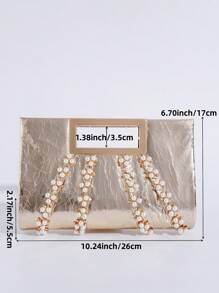Shein - Glittery Pearl PU Leather Clutch Bag