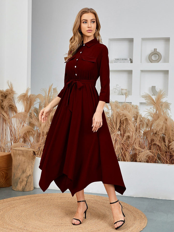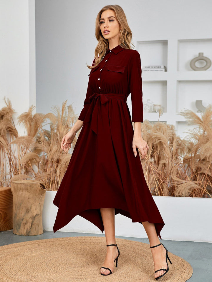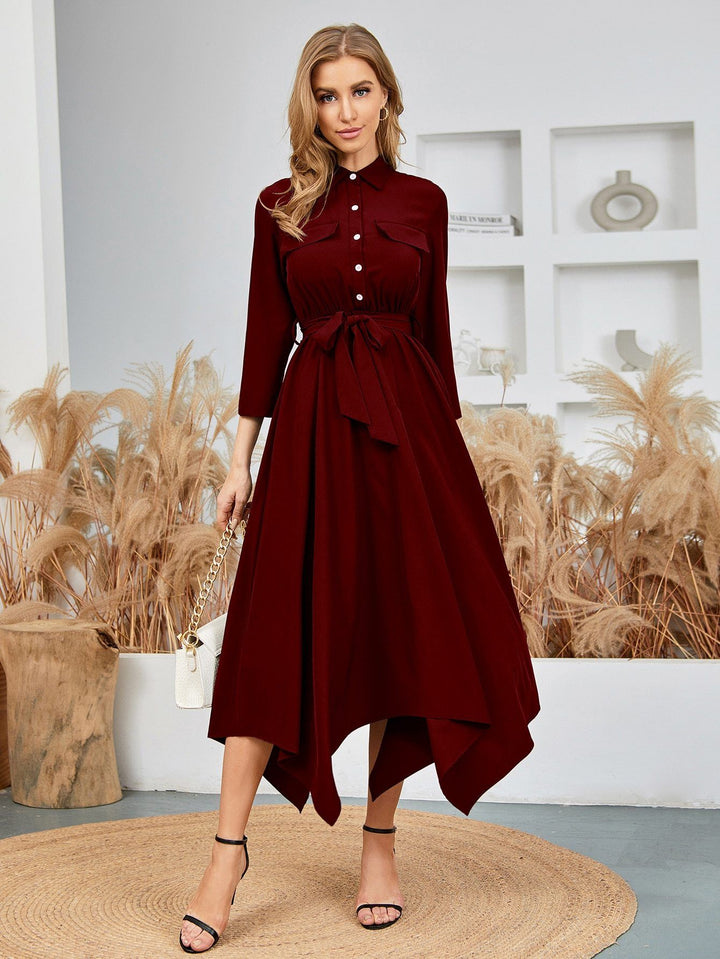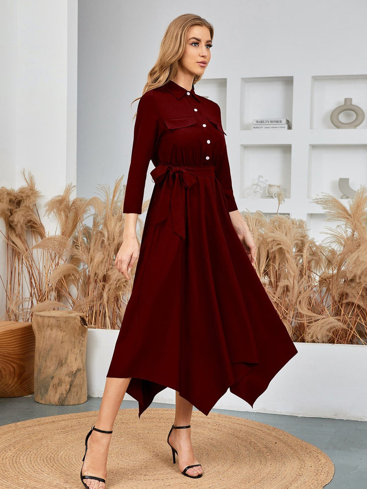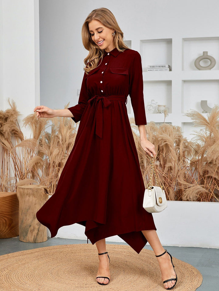Shein- Half Button Scarf Hem Shirt Dress With Belt
