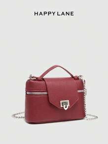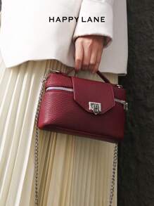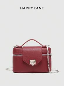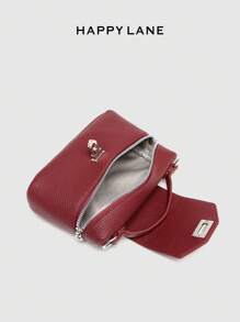 Shein - HAPPY LANE 1pc Classic Minimalist Faux Leather PU Ostrich Print Shoulder Bag