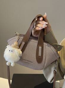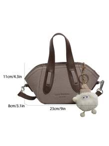 Shein - Khaki Patchwork Quilted Contrast Color Fashionable Retro Tote Bag