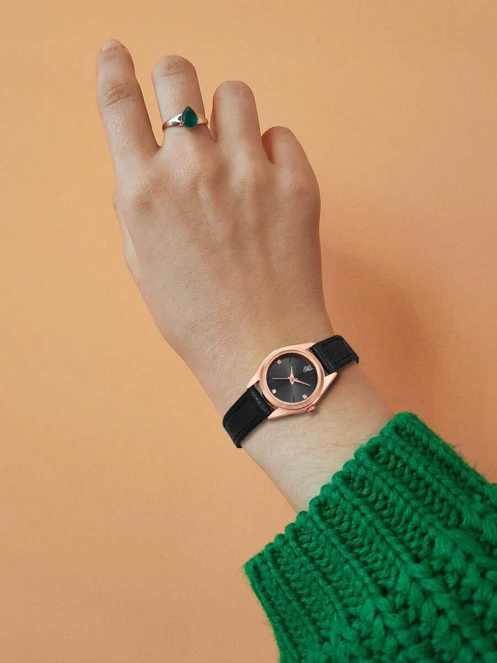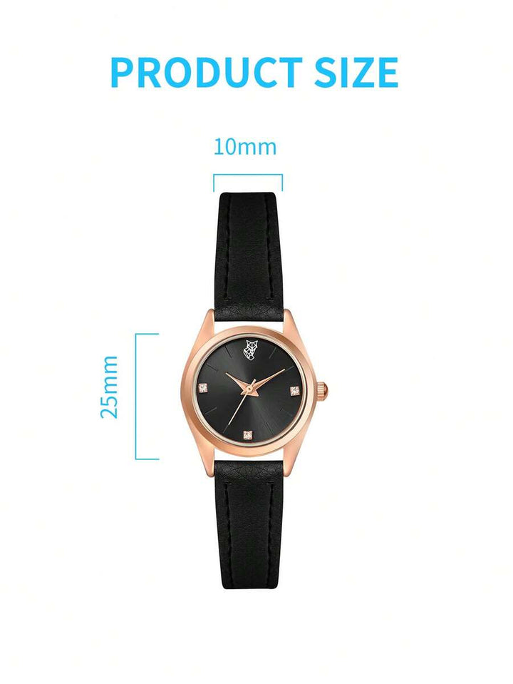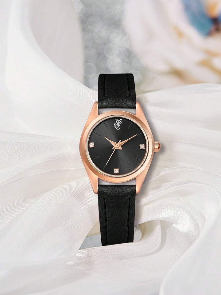 Shein - LUCKYFOX Single Box Women's Minimalist Fashion Rhinestone Leather Band