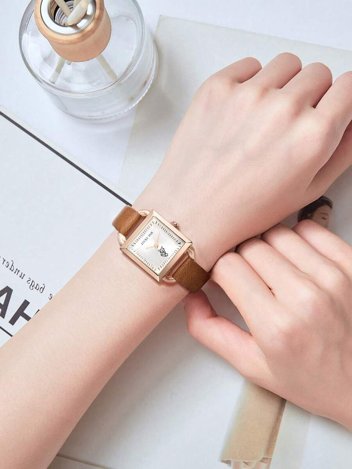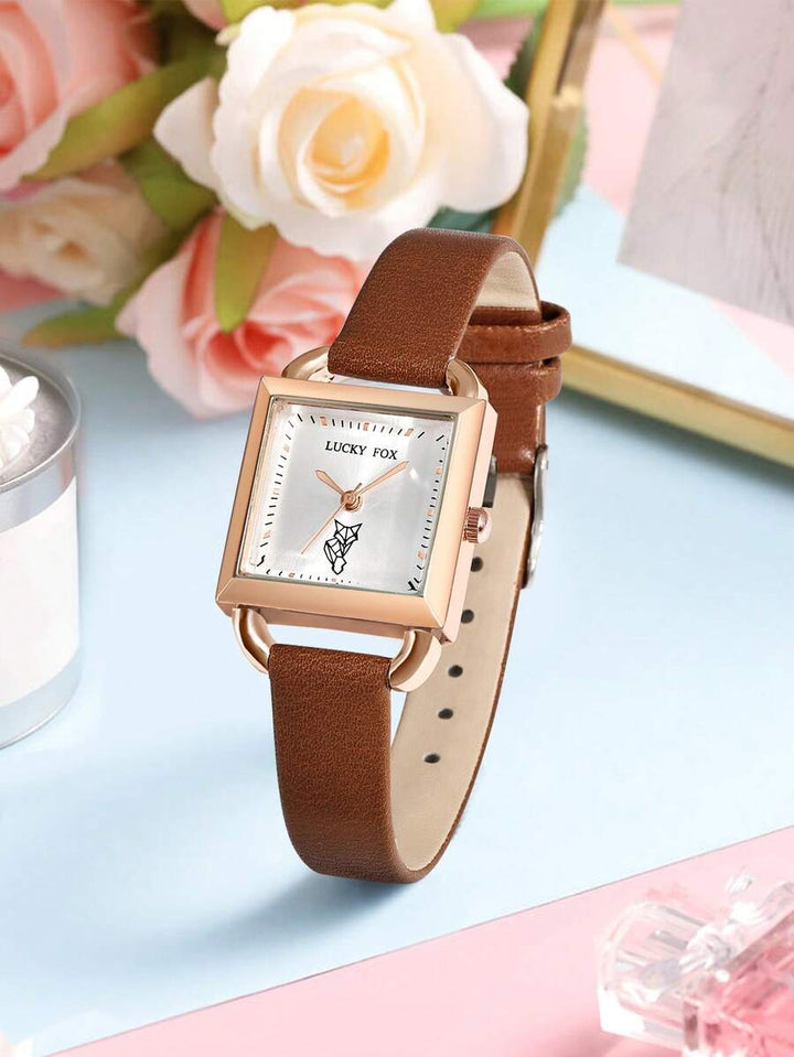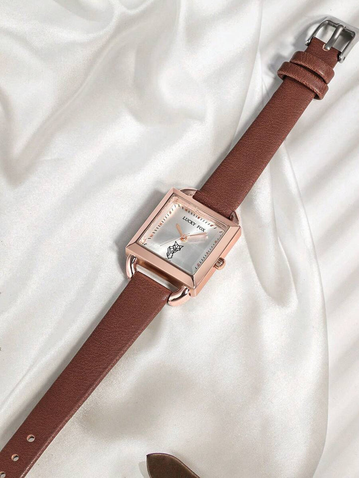 Shein - LUCKYFOX Women Square Dial Simple Fashion Design Leather Strap