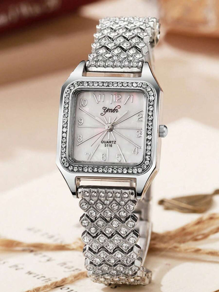 Shein - Luxury Elegant Women's Quartz Watch, Alloy Strap, Korean Style Square Dial