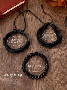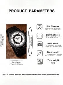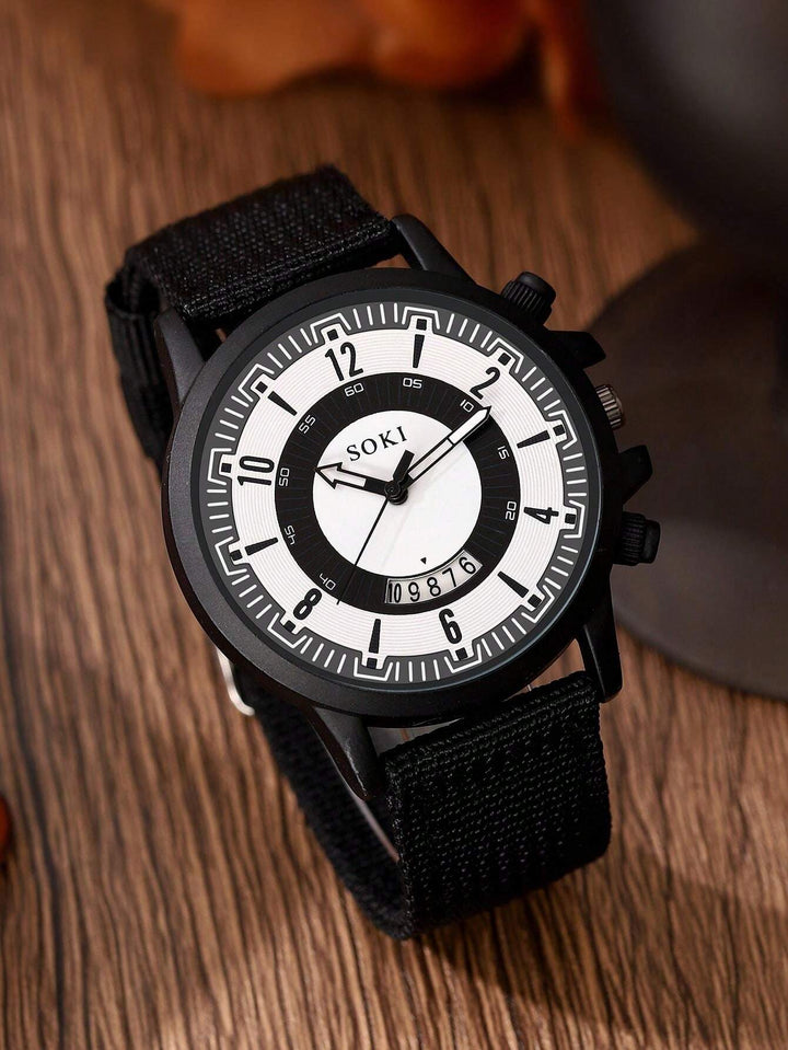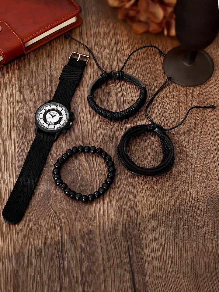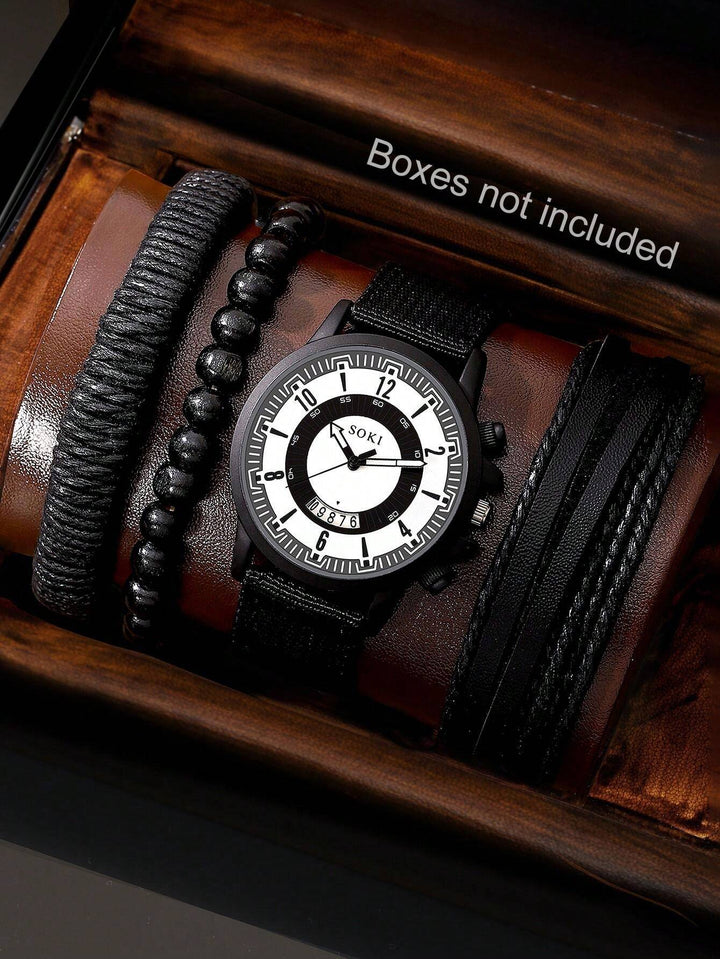 Shein - Men Watch 4 Piece Set Calendar Sports Recreational Arabicdigital Circular Dial Quartz Watch And Leatherrope Bracelet Accessories
