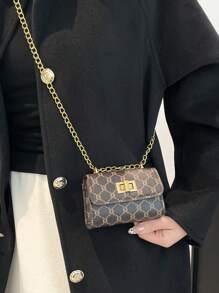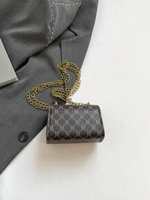 Shein - Mini Square Bag Geometric Pattern Chain Turn Lock PU