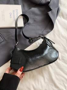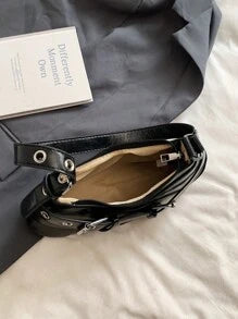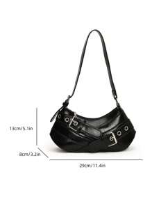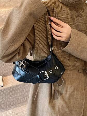 Shein - New Fashionable Buckles Decor PU Leather Shoulder Bag