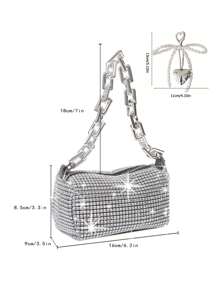 Shein - pcs/Set Sparkling Diamond Dinner Chain Shoulder Bag With A Silver Heart-Shaped Pendant