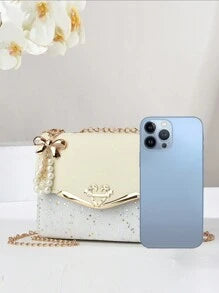 Shein - PLANEE Bow And Artificial Pearl Decorated Square Bag