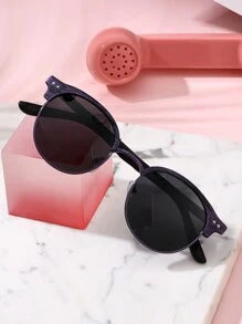 Shein - Polarized Sunglasses, Vintage Round Purple Woodgrain Frame, Fashion Classics For Men & Women