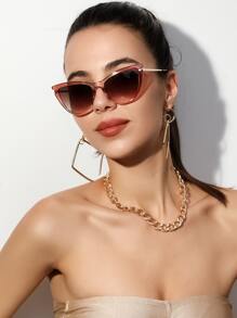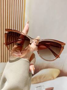 Shein - Retro Cat Eye Gradient Bohemian Style Sunglasses, Classic Plastic Frame Design For Men And Women