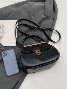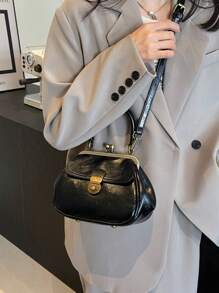 Shein - Retro Lock Handbag For Women, Stylish Chic Clasp Shoulder Crossbody Bag