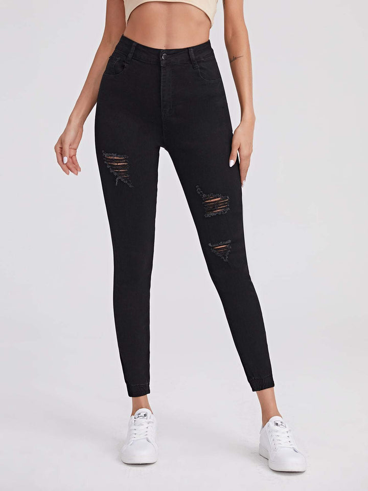Shein- Ripped Solid Cropped Jeans