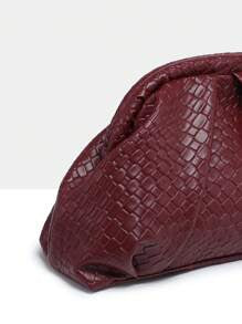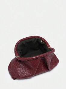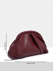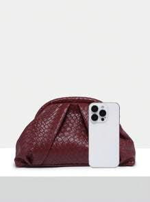 Shein- SIA Women Retro Minimalist Faux Woven Textured Angola Red Rivet Decor Large Capacity Ruched Clutch