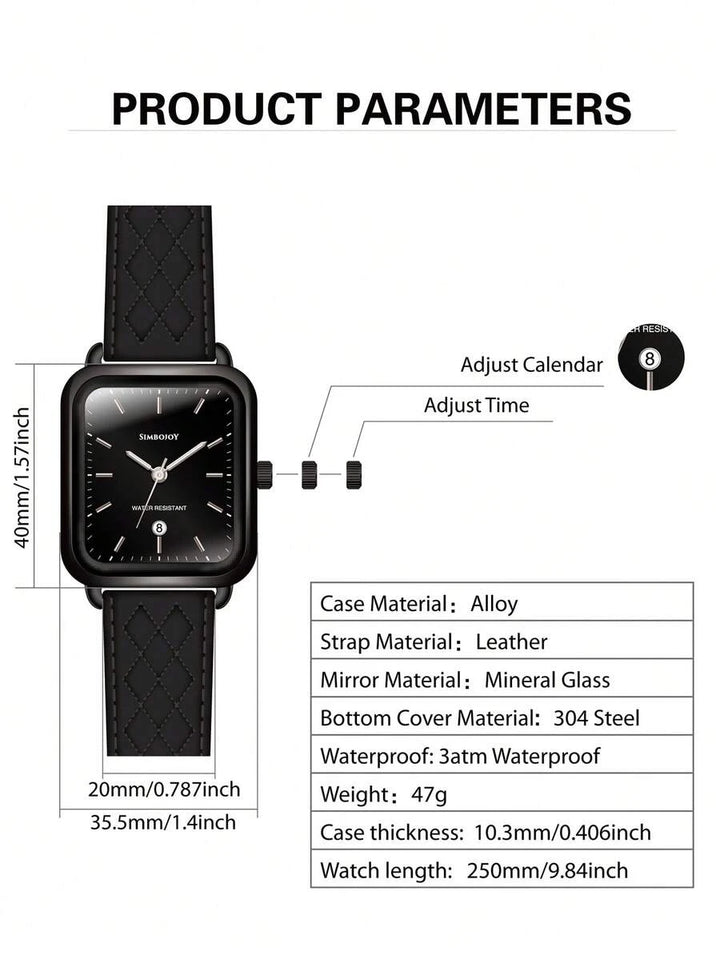 Shein - SIMBOJOY Ladies' Watch, Fashionable Square Waterproof Quartz Watch