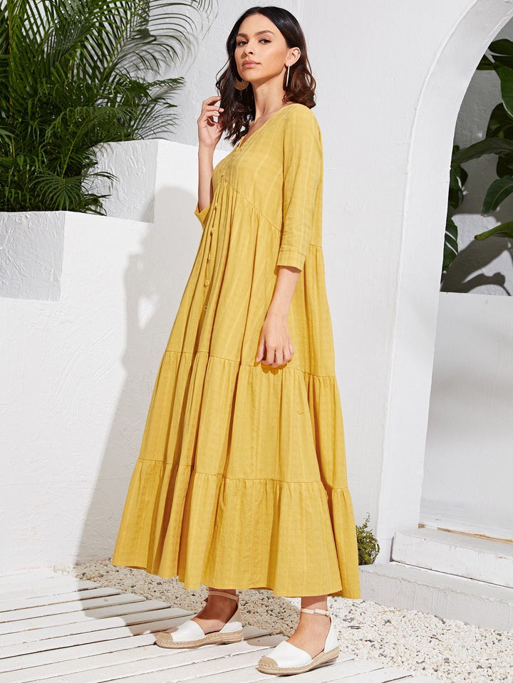 Shein- Single Breasted Ruffle Hem Solid Dress