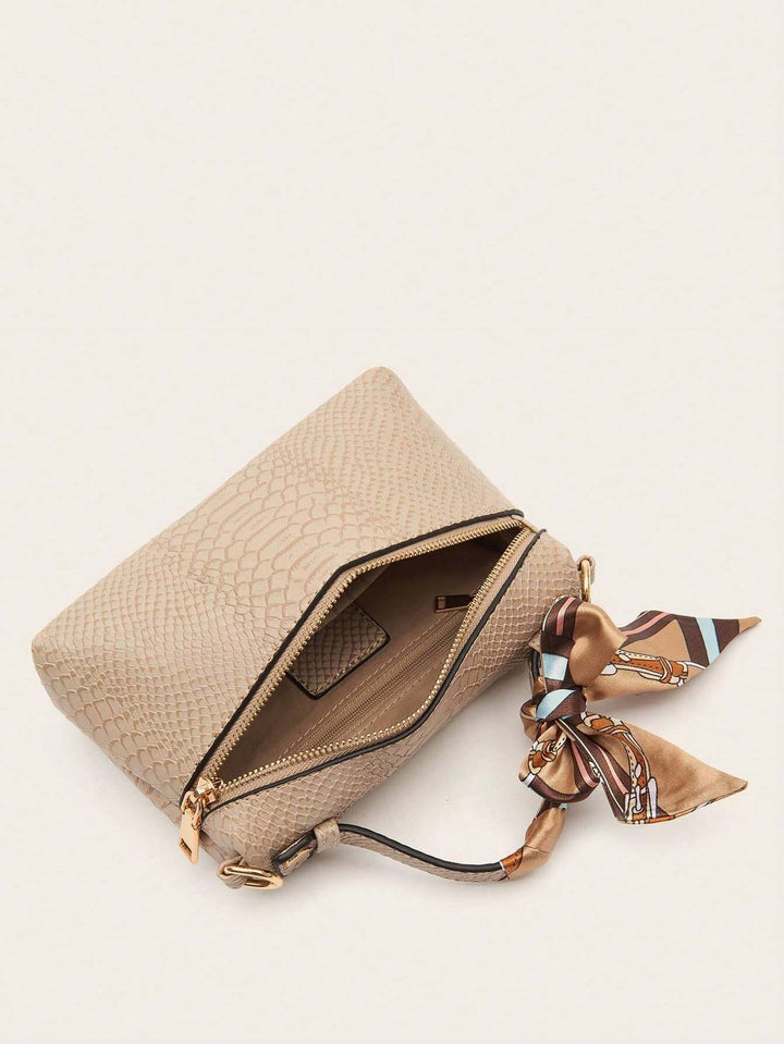 Shein - VANESSAMAY&DKMG 1pc Snake Patterned Solid Color Simple Small Handbag With Free Silk Scarf