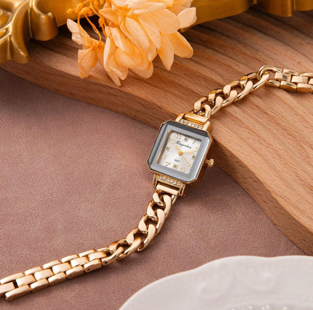 Shein - xinyunkou New Arrival Stainless Steel Band Rhinestone Bezel Quartz Women Watch