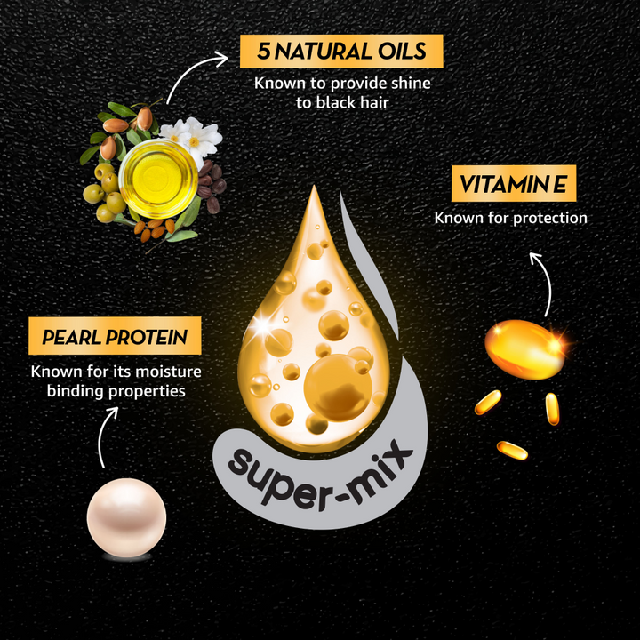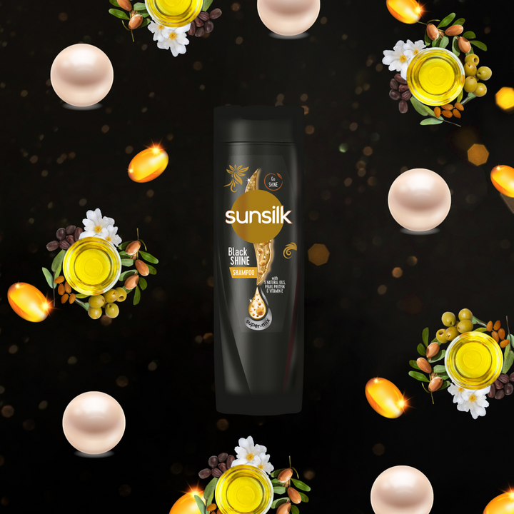 โ Sunsilk Black SHINE super-mix consists of the combined power of 5 Natural Oils, Pearl Protein and Vitamin E