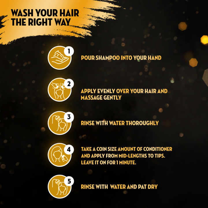 โ Wash using a rotating finger motion to nourish and cleanse pores and then rinse with running water till all shampoo is washed off.