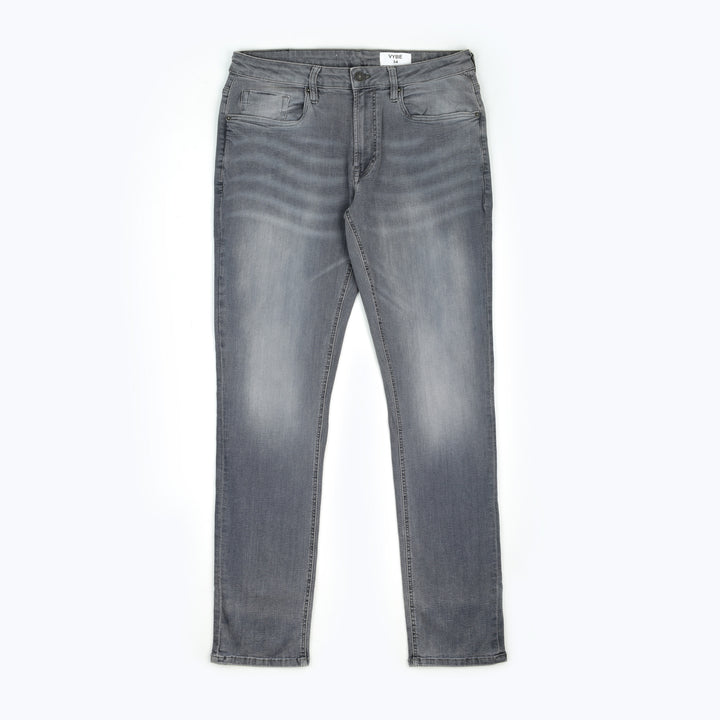 VYBE Men's Gray Denim is a stylish, durable choice designed for lasting, everyday wear. Our fabric is strong and resistant to stretching and fading, making these jeans perfect for any occasion. The slim fit cut provides an attractive yet comfortable fit, sure to impress.
