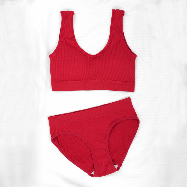 VYBE- Seamless comfy padded Bra panty set - Red