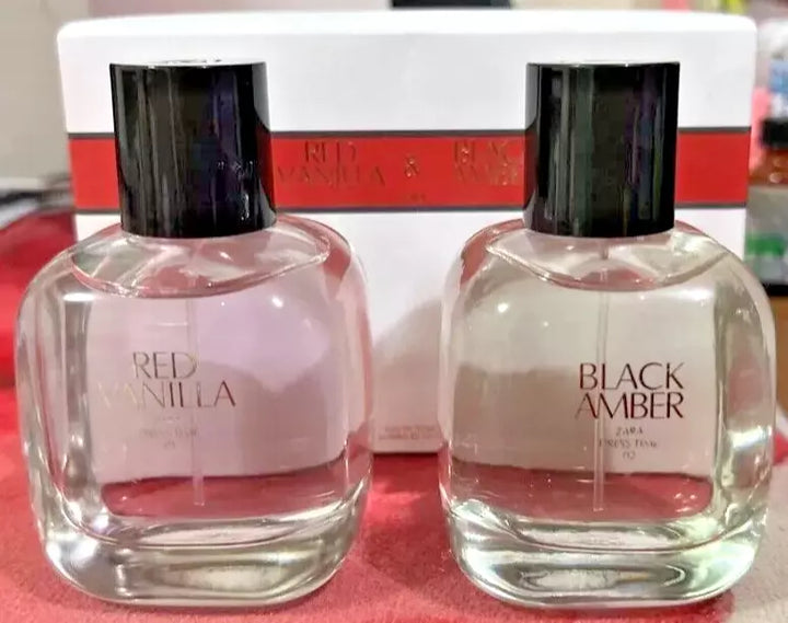 ZARA RED VANILLA EDT 90 ML + ZARA BLACK AMBER EDT 90 ML (3.0 FL. OZ).